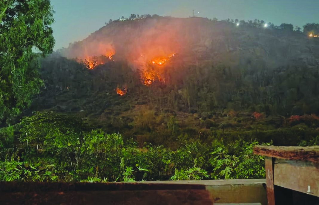 ಚಿಕ್ಕಬಳ್ಳಾಪುರ, ಫೆ.4- ವಿಶ್ವವಿಖ್ಯಾತ ಪ್ರವಾಸಿ ತಾಣ ನಂದಿ ಬೆಟ್ಟದಲ್ಲಿ ಸಂಜೆ ಅಕಸಿಕ ಬೆಂಕಿ ಕಾಣಿಸಿಕೊಂಡು ಗಿರಿಧಾಮದ ಸುತ್ತಲಿನ ಹತ್ತಾರು ಎಕರೆ ಅರಣ್ಯ ಪ್ರದೇಶ ಬೆಂಕಿಗಾಹುತಿಯಾದ ಘಟನೆ ಸಂಭವಿಸಿದ್ದು ಇದು ಕಿಡಿಗೇಡಿಗಳ ಕೃತ್ಯದಿಂದಲೇ ನಡೆದಿರಬಹುದೆಂಬ ಅನುಮಾನ ವ್ಯಕ್ತವಾಗಿದೆ.